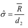 式中:R为平均极差,d2为随每组样本容量变化的常数,见下表: