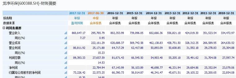 表4-6 龙净环保十年营业收入和利润