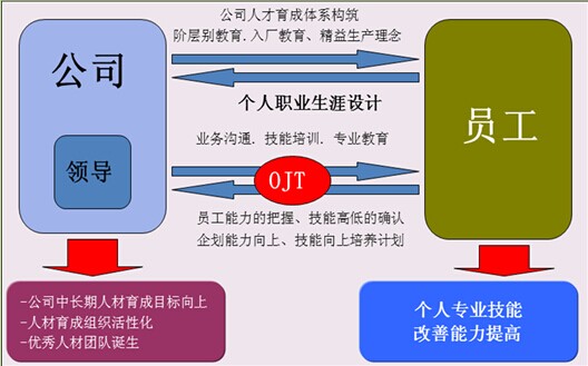 人才培养是一种文化,把人才培养概括成文化,足见其影响之大、影响之深,它已经成为某些公司独特的企业文化不可分割的一部分。丰田人才培养的基础是OJT,OJT与配套的“人事制度”和“系统教育”相结合,促进人才不断成长。让我们着重关注一下在整个培训体制中极为重要的OJT培训,如图3-25所示。