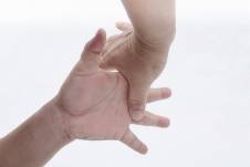 4.右手拇指放于左掌内与右手中指相对的无名指根部地方,不需用力,只要轻轻相互贴合扣住(图 2-6)。