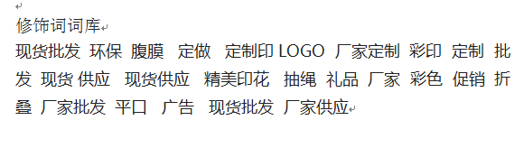 第三步:同样的道理,我们找出标题中的修饰词,然后组成修饰词词库。