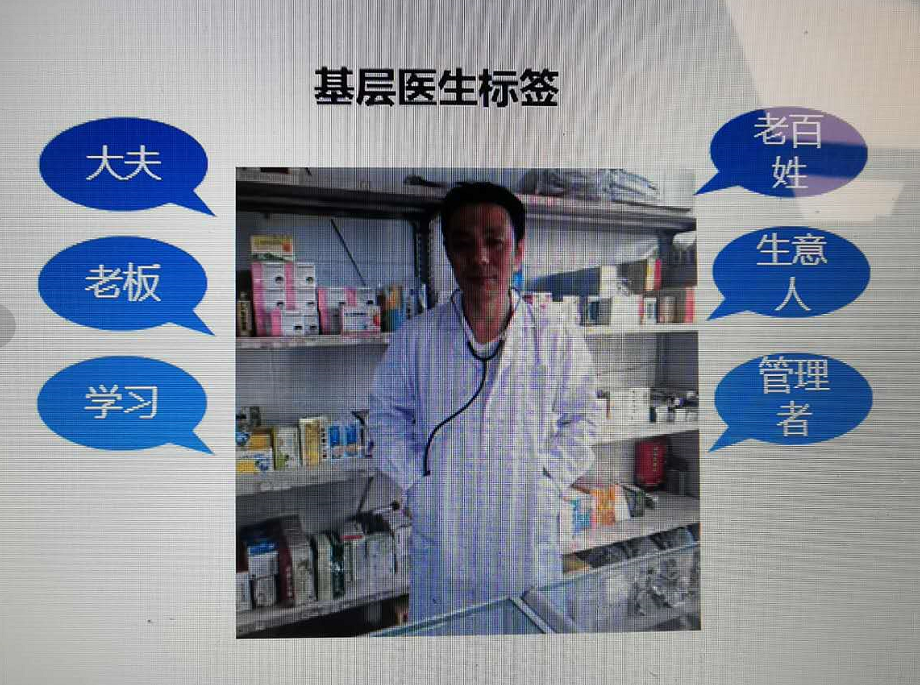 我们来了解一下基层大夫群体的特征。这是一群可爱的医生,如果为基层大夫贴标签,一共有6个标签:大夫,学习,生意人,老板,管理者,老百姓。如图2-1所示{缺图}。