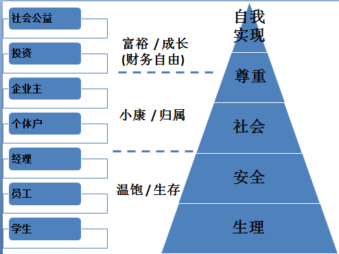 基于这理论和实践,我们的财务需求和目标也像阶梯一样从低到高按层次分为三种,分别是:财务自主、家庭抚养、社会贡献。这三个阶层与财富的积累、保有和分配息息相关。第一层是实现个人的财务自由,维持所设定的生活质量;第二层是为家庭成员,尤其是为下一代保留一定金额的资产;第三层是欲对社会做出的贡献,尽量满足社会的期待,并承担一定的社会责任。这三个层次的优先顺序从下而上。