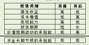 身前和身后的财务目标对“收益、变现、期限、风险”有不同的需求,如表4-16所示: