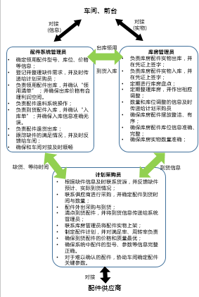 这里我们提供一个中型服务商配件部门的工作岗位对接模型,如图4-1,供读者参考: