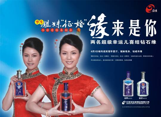 由于新老产品同时推广,且其主要目标消费群体是男性,于是今世缘借用“孪生姐妹花”更加生动形象化表述新老产品组合并吸引消费者的兴趣。这样一来不仅更加生动化的描述了产品间的关系,且使得新老产品成为关注焦点在身份上具备坚实的基础。同时,为今世缘代言人的寻找作了充足准备。