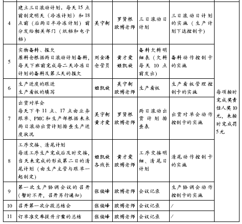第一,实施月产量目标达成军令状,将所有相关人员都捆绑到目标上来,让大家保持目标一致,同时分段消费15万元。这15万元是老板承诺的年度奖励目标,项目组老师跟老板沟通好,不是到年底的时候一次性奖励15万元,而是分段来奖励,不要等到最后才让员工拿到钱。