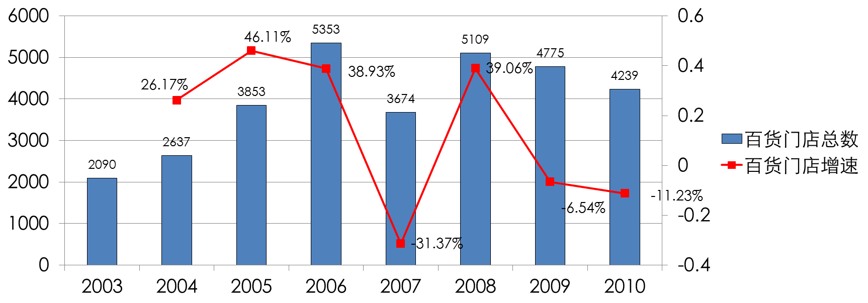 图1-1 近十年来我国百货门店总数及增速