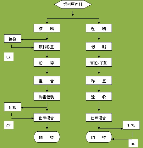 (1)饲养班不定期对饲料进行抽查化验分析,确保饲料按配方进行配料,保证奶牛的营养需要。检验出的不合格品的处置按《不合格品处理办法》执行。