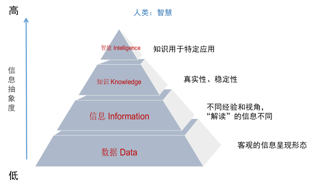 数字化转型的核心是数据,在企业的数字化实践中,通过对数据的分析和应用,发挥数据的产业价值。除了数据本身,还有几个与数据密切相关的概念,信息、知识、智能,这些概念都与数字化关系密切。