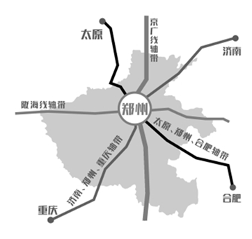 伴随着以高铁为骨架的交通网络的不断完善,根据《中原城市群发展规划》,依托 “米字型”交通网络结构,打造特色鲜明、布局合理的现代产业发展带;其中,沿京广发展主轴及陇海发展主轴已经形成,其余两个发展带将随着高铁的建成逐步形成。