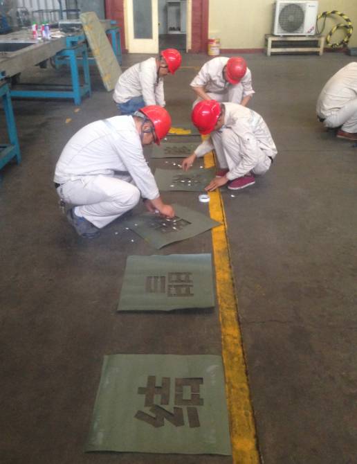 上图是机修按功能区域划分,地上喷区域名称,打造一目了然的生产现场。