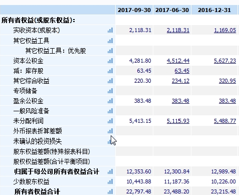在这里,笔者特别提醒,有些公司的所有者权益很高,但是存在大额的少数股东权益(即这部分资产不属于上市公司股东),这时候使用PB估值就会带来误区。比如房地产公司多存在联合开发问题,因此存在大量的少数股东权益,像表1-3所示的公司,截至9月份所有者权益为228亿元,但是有104亿元都是别人的(少数股东权益)。