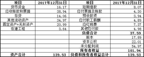 笔者把A公司简要版的资产负债表整理如下,从资产构成上看,主要是应收账款和票据、其他流动资产、固定资产、货币资金及存货。负债合计仅37.59亿元,应付票据及账款仅4.30亿元,净资产高达139.53亿元。