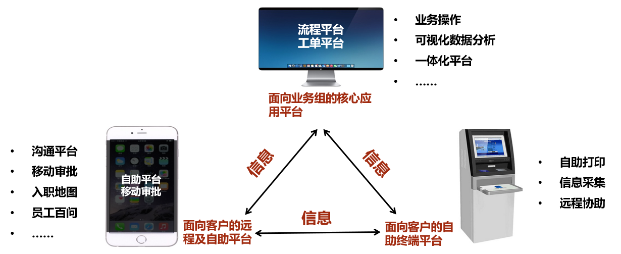 为了实现以上各类自助服务,随着先进的网络和人工智能的广泛应用,很多终端设备的出现,大大提升了服务的效率和质量。电脑、移动端、固定终端得到了广泛应用。
