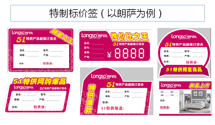 请看以该卖场中朗萨家私专卖店为例设计的活动标价签,如图6-3所示。