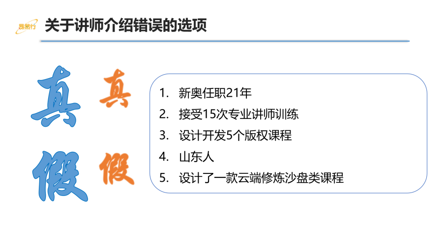 讲师介绍的核心在于学员与培训师建立联系。既可以是专业上的,又可以是生活上的。通过介绍,拉近学员与培训师之间的距离,让学员能够感知到培训师是可以帮助自己的,或者学员意识到可以向培训师学到东西。