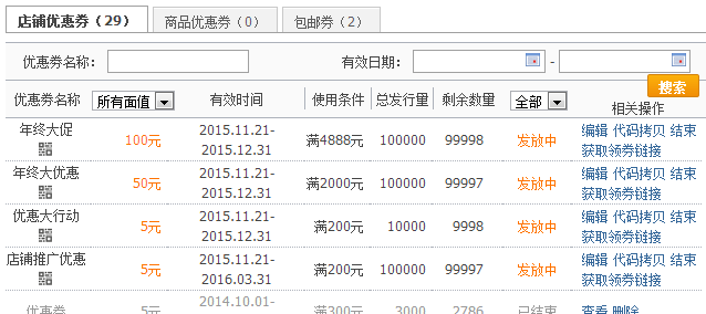这个活动不管是工业品还是快消品都可以设置,并且优惠券可以设置多个档次多个数量,当优惠券到期后,可以重新设置,所以灵活性很强,适合所有的电商人长期做。