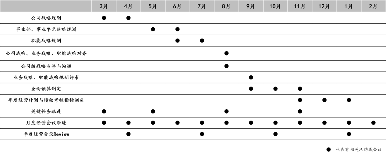 A公司通过建立战略日历的方式进行相关活动管理,整体说明如下: