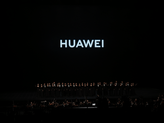 在发布会结尾的时候,中国交响乐团再次登场,和华为合唱团一起演唱《光辉岁月》国语版,再次点燃了现场热情,还引发线上下线万人合唱互动。
