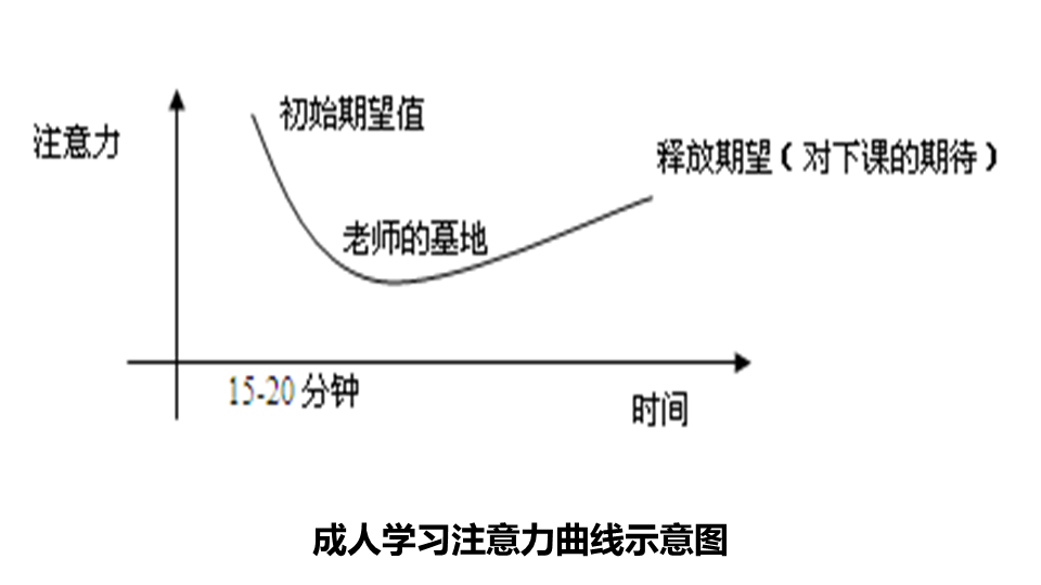 有专家研究发现,成人在学习过程中的注意力会有一个曲线变化(如图5-1所示)。