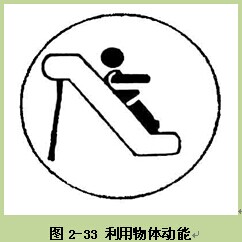 动能俗称冲力。依物理学公式,一个物体的动能是其质量与速度的乘积。在工厂中,工人搬运物体的总重量可包含三部分:物体本身的重量、搬运或运用的工具本身的重量,以及运用身体部位本身的重量。因此,我们必须充分运用三者的重量与速度,如图2-33所示。