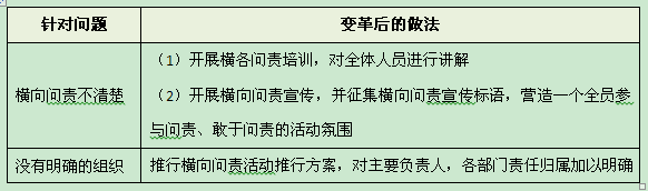 :针对横向问责没有明确的组织,没有明确的组织者、领导者,项目组就推出横向问责活动推行方案,对主要负责人,各部门责任归属加以明确。横向问责活动推行方案如下文。