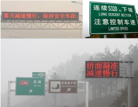 公路会有很多提示,比如事故多发地点请司机注意。