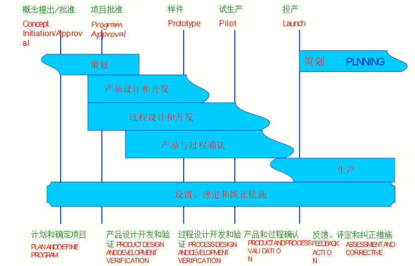 产品质量先期策划和控制计划( Advanced Product Quality Planning and Control Plan,简称APQP),是一种结构化的方法,用来确定和制定确保某产品使顾客满意所需的步骤。