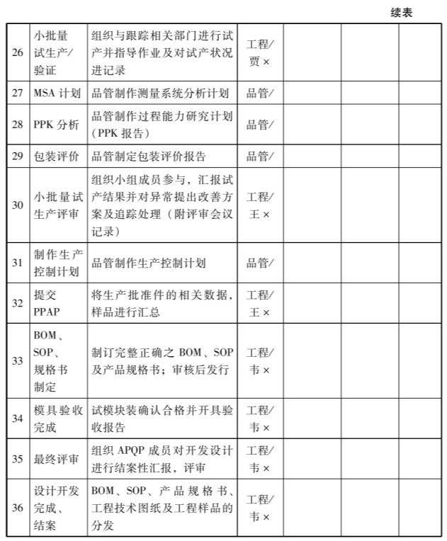 产品保证计划一般由研发工程部主导制作,APQP成员要参与评审,主要作用是识别从原材料到成品出货的每个阶段存在的主要风险以及初步管控设想,同时这也是FMEA和控制计划的基础。