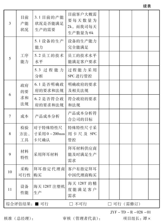 顾客主要包括使用者、代理商、经销、下游组装工厂等,在立项时一定要了解清楚客户的要求是什么。如果没有设计责任,则可以直接把客户的样品需求单当作客户呼声,因为上面有明确的功能性能要求、法律法规要求、交样要求。如果有设计责任,就必须进行市场调查,搜集相似产品成功的经验和失败的教训,以及兄弟厂商常见的异常等。如空调风扇项目加水困难、噪音大的问题等,就要纳入APQP的输入。