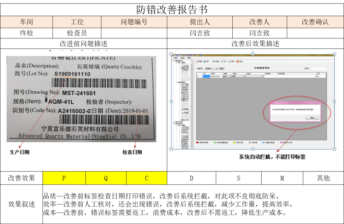 对防错过程进行评审,前面的过程和结果进行总结、归档并补充数据库,探讨方案能否复制、推广其他类似设备或产线。