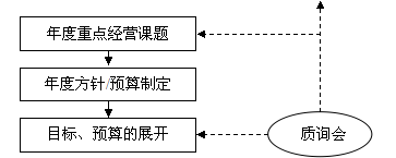 以下是两张比较典型的方针管理构造图。图1-4是某跨国企业方针管理构造图,图1-5是某500强企业在华工厂的方针管理构造图。