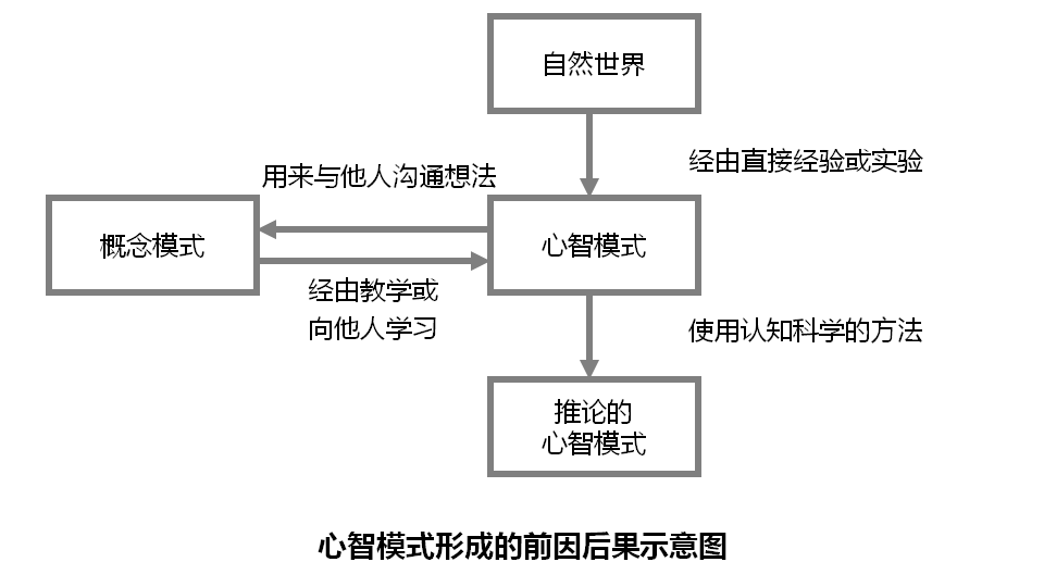 心智模式这个名词是由苏格兰心理学家肯尼思·克雷克(Kenneth Craik)在20世纪40 年代创造出来的,之后就被认知心理学家Johnson-Laird(约翰逊·莱尔德)和认知科学家马文·明斯基(Marvin Minsky)、西蒙·派珀特(Seymour Papert)所采用,并逐渐成为人机交互的常用名词。”