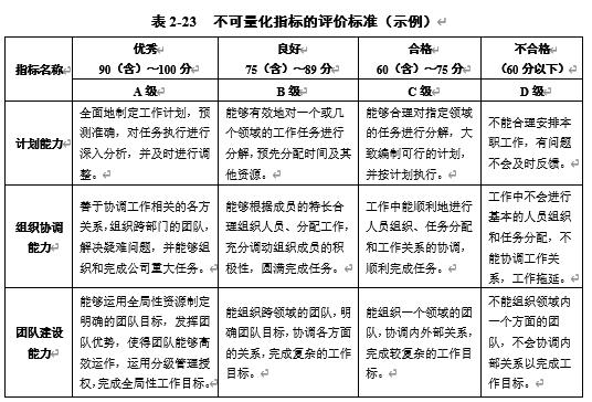 表2-23 不可量化指标的评价标准(示例)