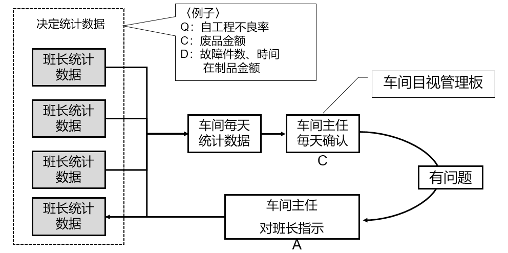 车间级会议:主要支持人是车间主任,车间的所有班组长参加会议,频率一般是以天为单位,会议核心内容是班组中遇到的日常管理中的疑难杂症(往往需要跨部门协作的问题)。