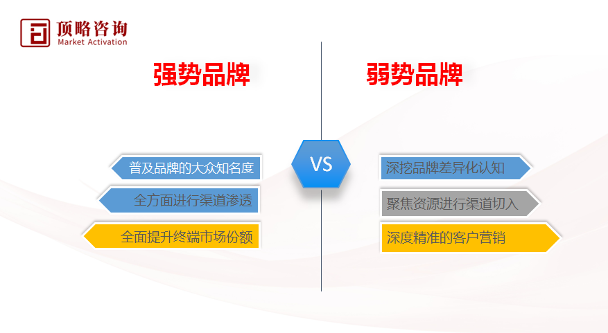 在这样一场品牌认知战中,相对较为弱势的品牌也不是只有完全束手就擒的份。其中,差异化定位进行精准传播切入是较为经济有效的方法之一。笔者建议,这些企业应该聚焦资源在局部市场中进行全方位的饱和式进攻。