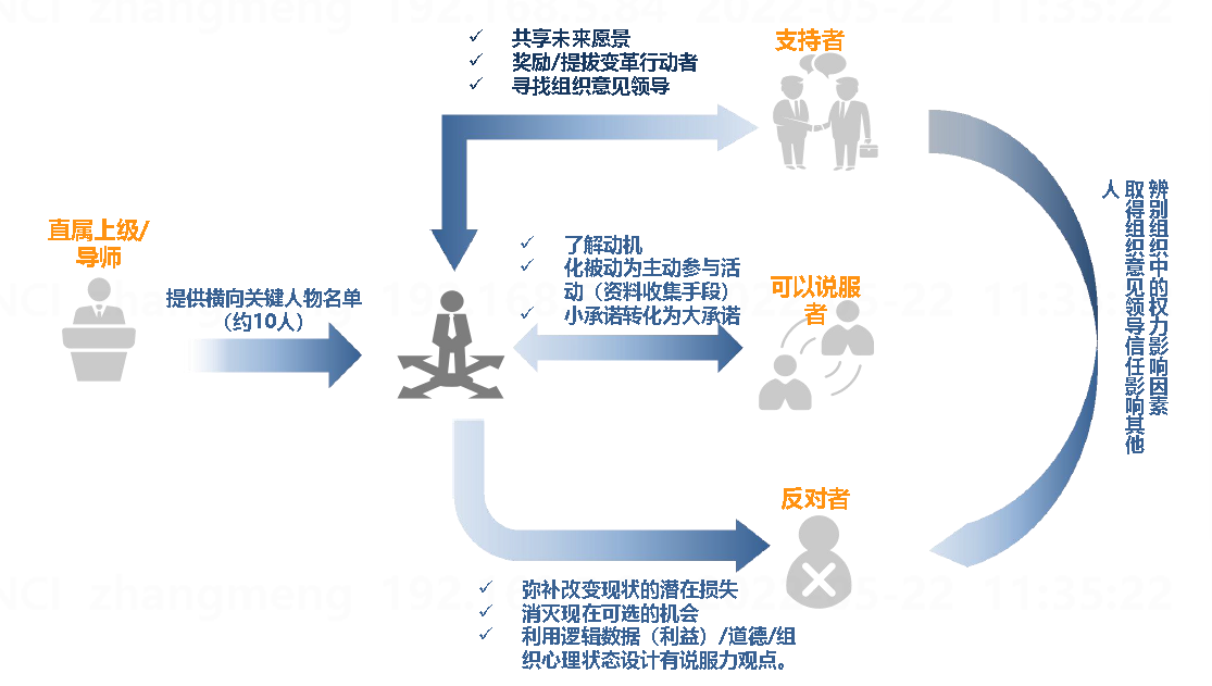 你上级喜欢何种交流形式、汇报频率,参与何种决策 | 组织中的意见领导是谁?你如何获取他的支持 |