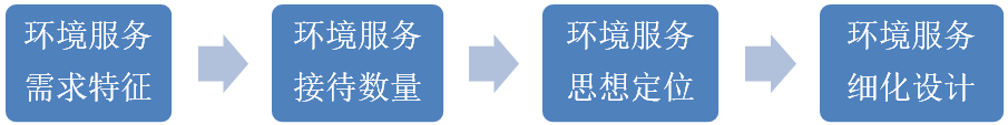 环境服务产能设计,也要首先确定环境服务需求的特征,同时预测环境服务接待的人数,而后制定环境服务的思想和框架,最后进行细化设计。