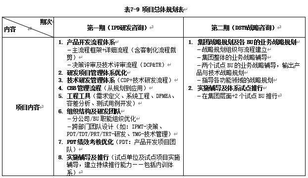 IPD研发咨询项目实施安排(以产品开发试点项目实施为例):