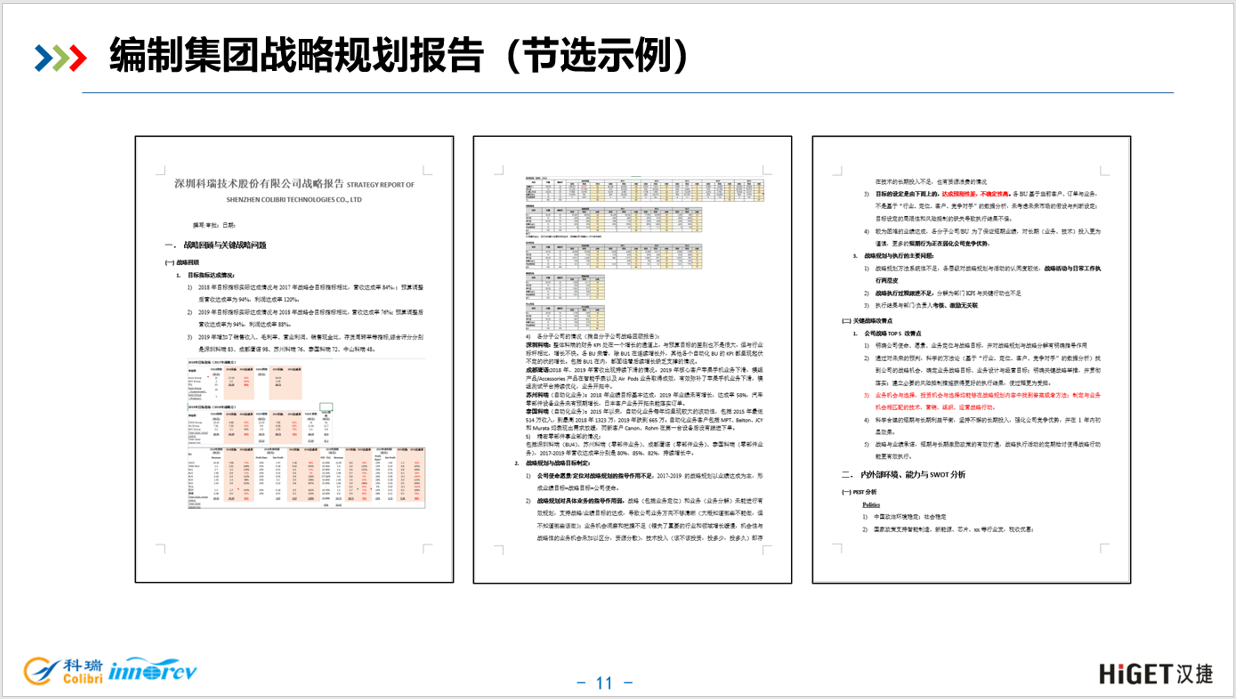 汉捷咨询顾问组向科瑞技术提交了详细的调研诊断报告和项目建议方案,并与科瑞技术高层做了汇报讲解和沟通,最终一致同意顾问组提出的总体规划,分步实施的方案,分为两期开展完成IPD研发咨询项目和DSTE战略咨询项目。