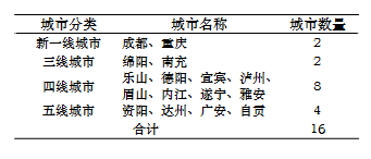 根据新一线城市研究所最新的城市分类,成渝城市群16个城市共有新一线城市2个、三线城市2个、四线城市8个、五线城市4个。