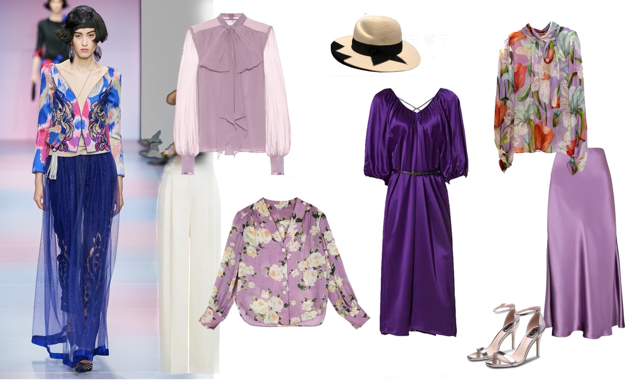 浪漫优雅的货品基调:紫色被称为优雅和浪漫的之色,同时又是光波最短的颜色,在自然界中比较少见的颜色,因此紫色又被看作是稀有高贵的颜色。淡紫色的浪漫不同于粉色甜美式的浪漫,是带有高贵神秘之感。而深紫色则是魅力十足,带有难以探测的华丽之感。如图8-27所示。