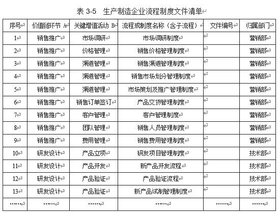 企业价值链作为企业创造价值的运营链条,包含了企业经营管理的重要环节。因此,我们选择企业价值链作为流程与制度梳理的模型。根据波特价值链分析模型的核心思想,需要通过以下两个步骤完成企业业务流程和管理制度的梳理工作,进而构建一张企业的流程制度清单。