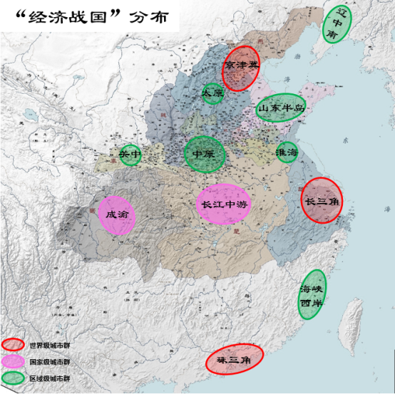 一不小心翻看了一下战国地图,竟然惊奇的发现,各大城市群犹如经济上战国,廊坊所处的京津冀城市群北部地区就是燕国属地,长三角区域范围竟然和越国国界相差无几,关中之地矗立秦国,山东半岛览胜齐国,成渝战巴蜀,中游遥望楚,淮海几相争,中原展宏图,一幅宏大的“经济战国”地图画卷在我眼前展开。